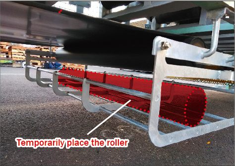 In addition to the role of preventing rollers from falling off, the fence section can be temporarily placed with rollers dropped inside the fence during replacement, making it safe to replace heavy return rollers at high altitudes. (You can also pull out from the side.)